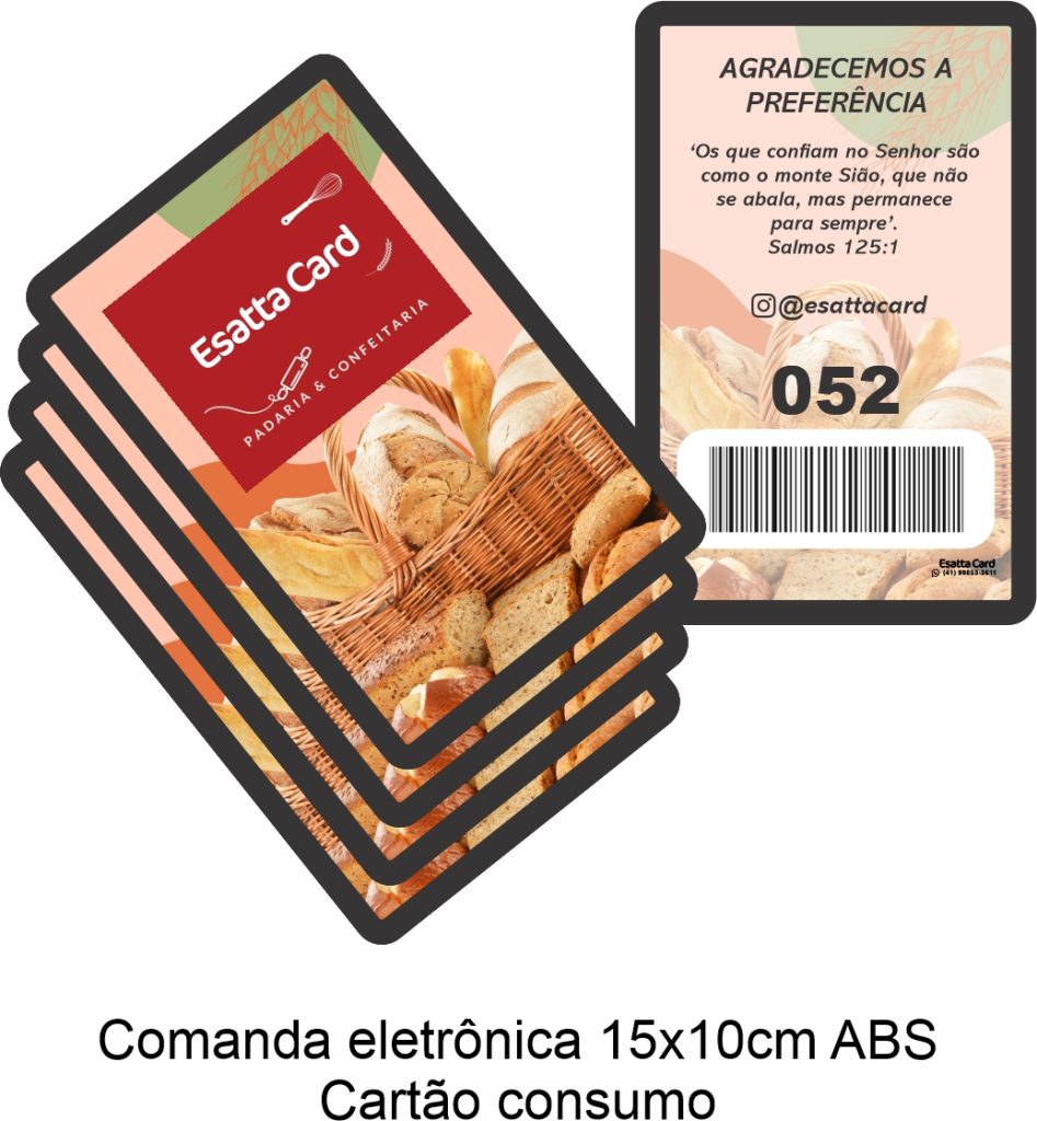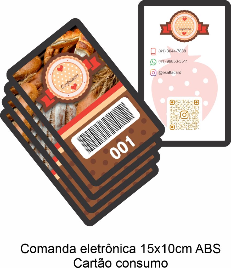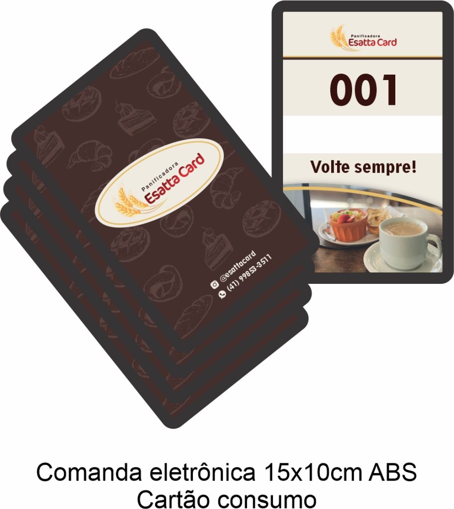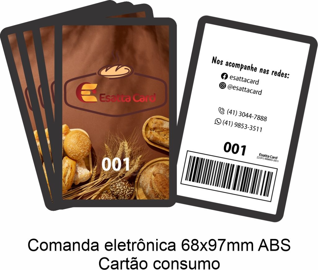 Produzimos comandas eletrônicas e cartões de consumo com materiais resistentes como PVC laminado e plástico ABS, disponíveis em diferentes tamanhos e layouts.
