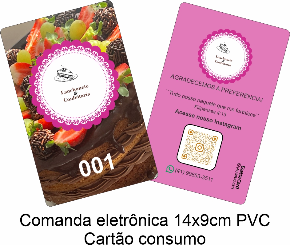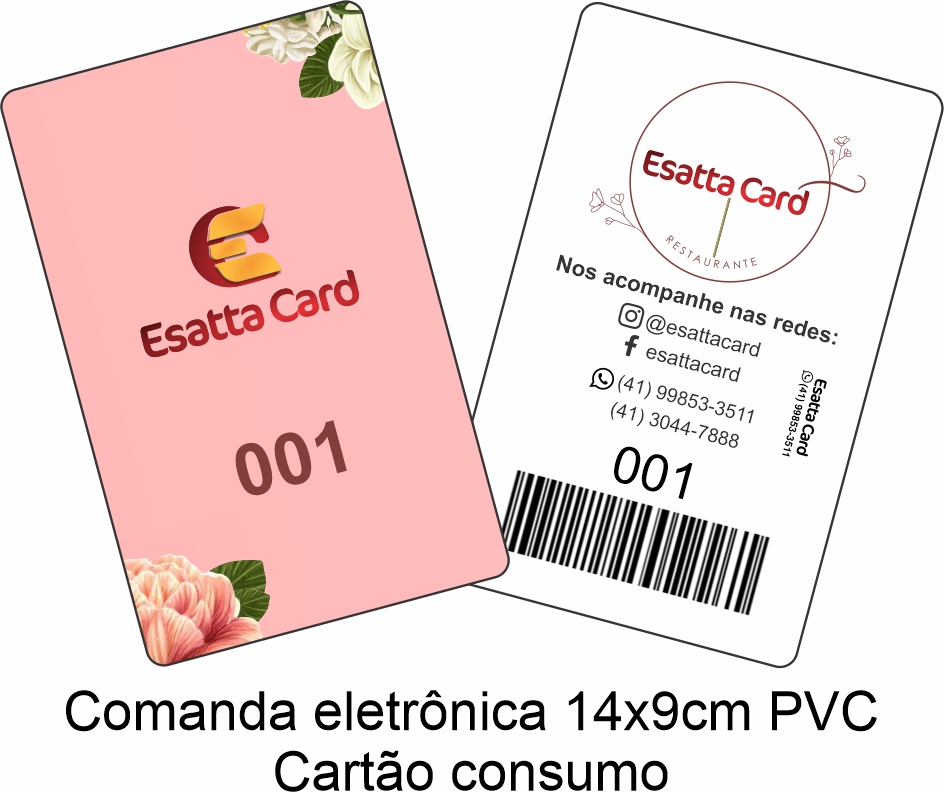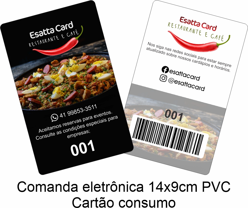 As comandas de consumo em PVC laminado são lindas e práticas; Totalmente personalizáveis, podem ser impressas só frente ou frente e verso conforme o gosto ou necessidade de sua empresa ou instituição.